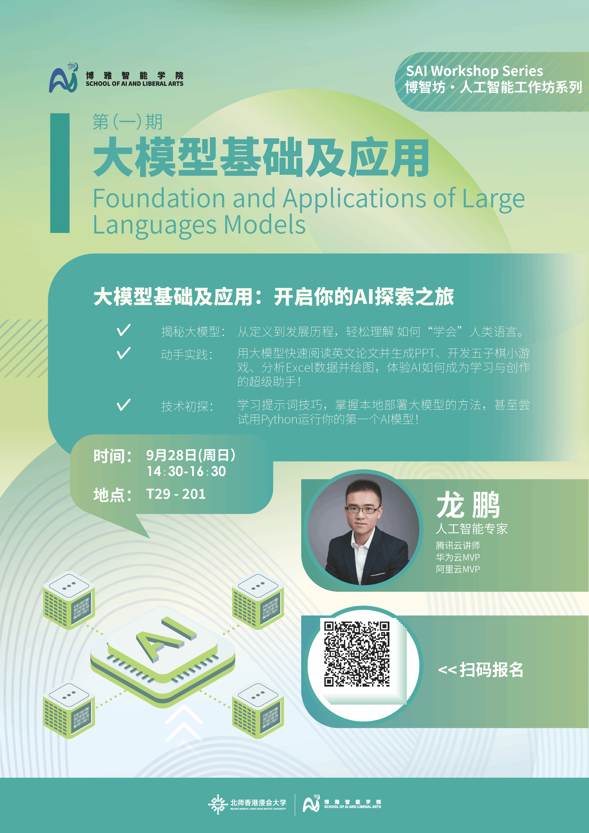 博雅智能学院携手腾讯云,推出“博智坊·人工智能工作坊”系列,致力于提升同学们在人工智能领域的理论素养与实践能力。本期工作坊主题为“大模型基础及应用”,具体安排如下: